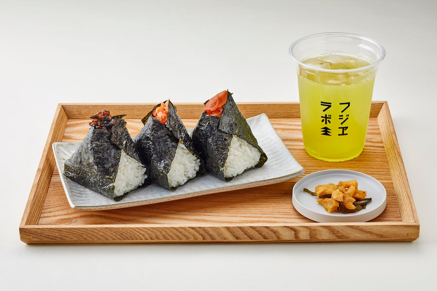 『フジヱラボ エキュート立川店』では山本山が創業から取り扱っている「お茶」だけでなく、山本山の商売のもう一つの柱である上質な「海苔」を堪能できる食事メニューもご提供します。九州・有明海産の板海苔、あおさ海苔、ばら干し海苔という種類の異なる海苔をふんだんに使った看板メニュー『ほうじ茶だしで食べる「海苔だく茶漬け」』をはじめ、有明海産の高級海苔を巻いたおにぎりは「鮭」や「梅」など定番の具材から、山本山の商品「海苔佃煮のりの」をアクセントに使った『のりの×ちりめん山椒』などのオリジナルの具材まで、店内で手作りしたものを販売します。