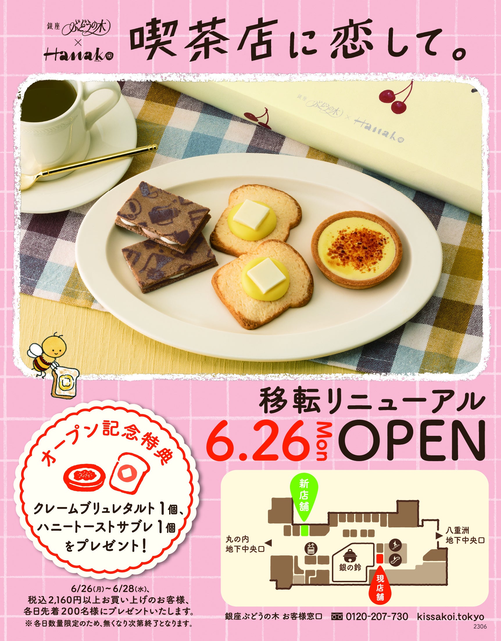 「銀座ぶどうの木(※)」と「Hanako」が“新しい東京スイーツ”を目指してコラボレーションした『喫茶店に恋して。』。この度、JR東京駅改札内にあるグランスタ東京内での移転&リニューアルオープンが決定いたしました。喫茶店のレトロなムードをよりお楽しみいただける、クラシックな空間に生まれ変わります。