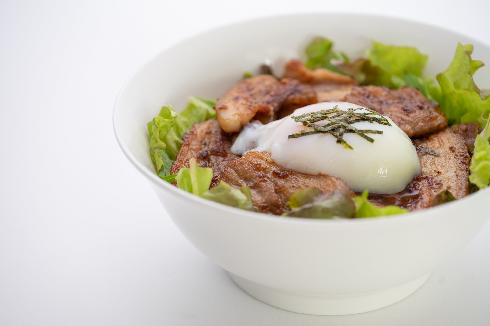 阿智村産のお米「風さやか」を使用し信州幻豚のバラ肉を贅沢に盛り付けた食欲をそそる一品。