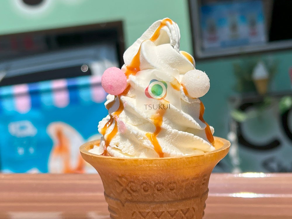「ツクイアイス」はバニラアイスクリームをベースに、地域ごとにオリジナルのトッピングを施し、ツクイのロゴを印刷した食べられるシールを添えて提供します。