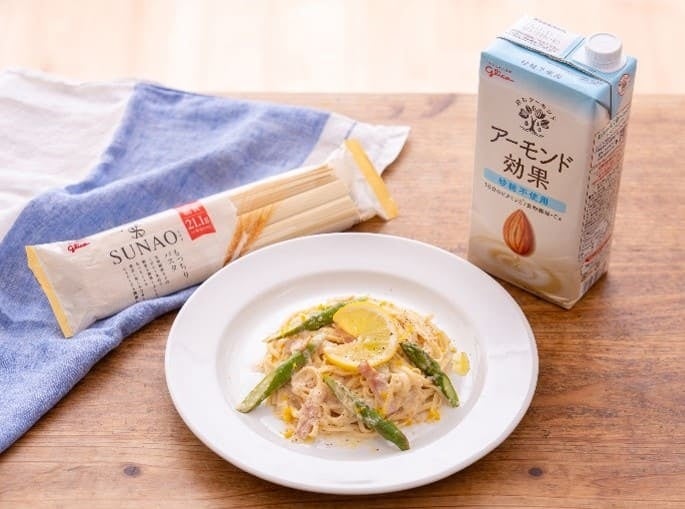 江崎グリコ株式会社は、5月30日の「アーモンドミルクの日」にあわせて、YouTubeをはじめとしたSNSの総フォロワー数100万人以上を誇る料理家夫婦である「ぐっち夫婦」とコラボし、「アーモンド効果」を使用したアレンジレシピ「ベーコンとアスパラのレモンクリームパスタ」を公開しました。