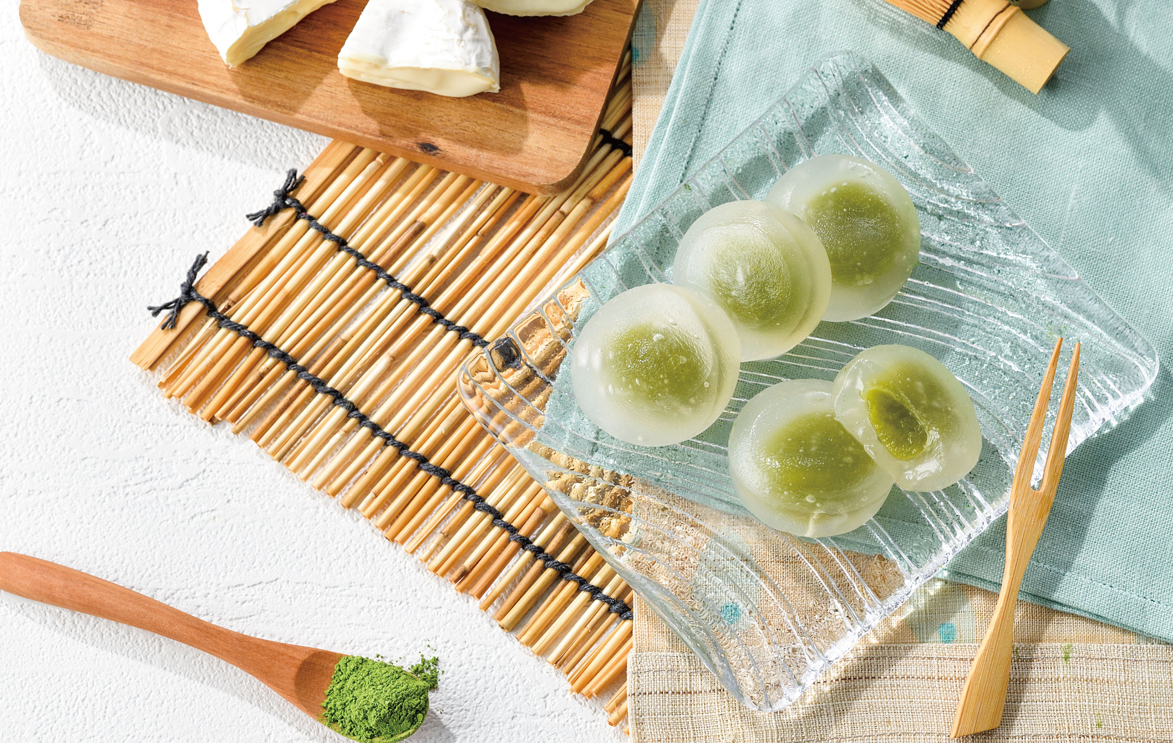 マスカルポーネチーズとカマンベールチーズをブレンドした抹茶餡を甘みのある もちもち食感のわらび餅で包み込みました。