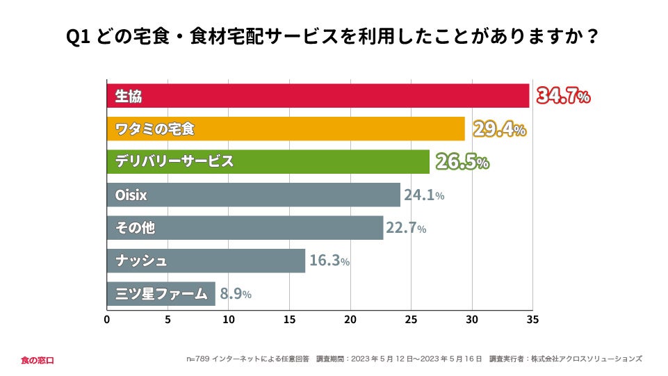 そこで、株式会社アクロスソリューションズと一般社団法人 日本唐揚協会が共同運営している食の窓口(URL:https://karaage.ne.jp/contents/ )は、20歳〜60歳以上の男女789人を対象に「宅食弁当や食材宅配サービスの利用についての意識に関するアンケート調査」を実施しました。