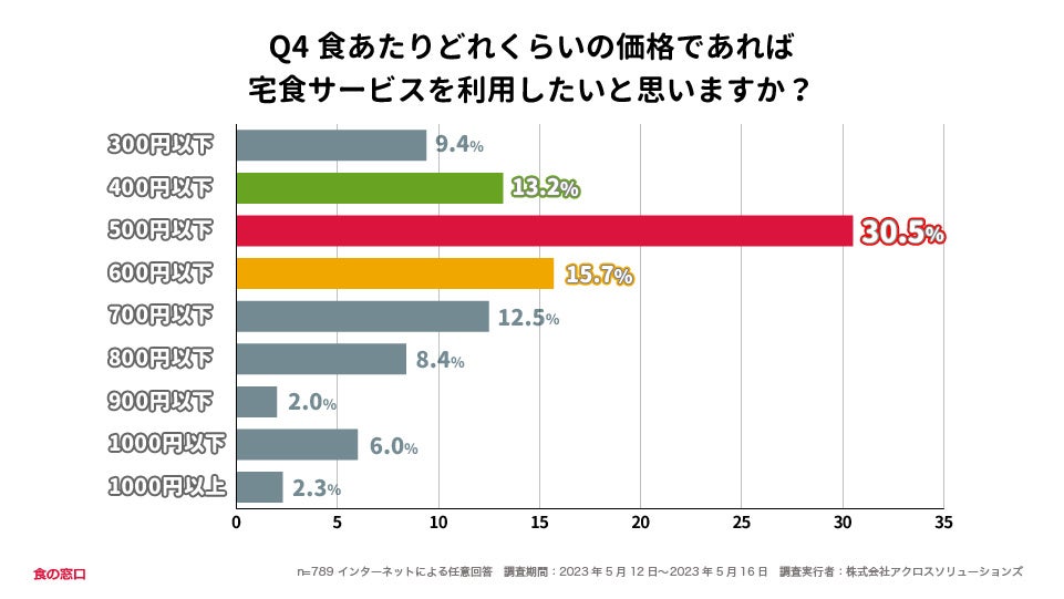 Q4 1食あたりどれくらいの価格であれば宅食・食材宅配サービスを利用したいと思いますか?