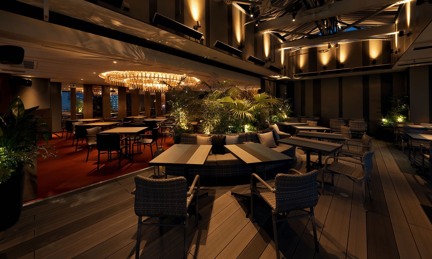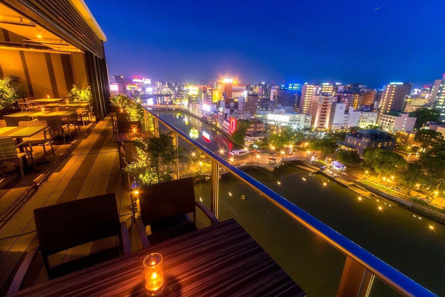 美しい中洲を一望できる開放的な最上階ルーフトップテラスラウンジを完備。刻々と表情を変える夕景や煌めく夜景に包まれながら、優雅なひとときをお過ごしいただけます。