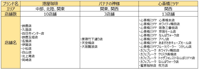 「港屋珈琲」「バナナの神様」「心斎橋ミツヤ」の限定26店舗