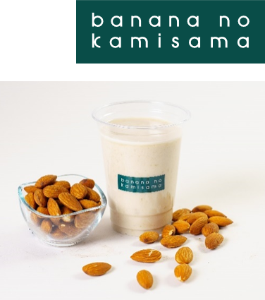 「アーモンド効果」をご活用いただくタイミングで、独立したオリジナルメニューとしてアーモンドミルクバナナスムージーが新登場しました。カスタマイズメニューとしてもミルクからアーモンドミルクにベース変更ができ、お好みのスムージーと合わせてお召し上がりいただけます。