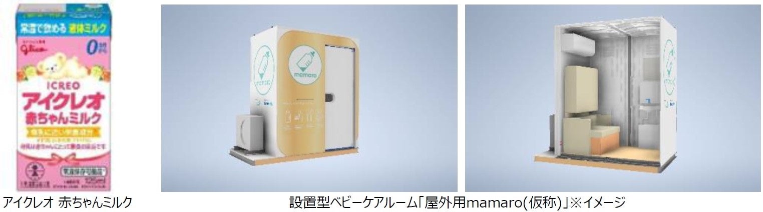 今回、さらなる外出負担の軽減を目指し、外出先で液体ミルクが手に入り、その場で授乳が可能であれば、外出にかかる負担軽減につながると考え、Trim株式会社と連携し、第42回横浜開港祭において、設置型ベビーケアルーム「屋外用mamaro(仮称)」のブース内にて「アイクレオ 赤ちゃんミルク」の提供を実施することとなりました。ご希望されるご家族に「アイクレオ 赤ちゃんミルク」をお試しいただき、使用感や外出先での液体ミルクの購入について簡単なアンケートに回答いただく予定です。江崎グリコは、これからも、母子栄養研究にもとづいて子どもの発育を応援する「アイクレオ」ブランドの展開や、その有効な活用を促進することで、子どもの発育と子育てのサポートに貢献してまいります。