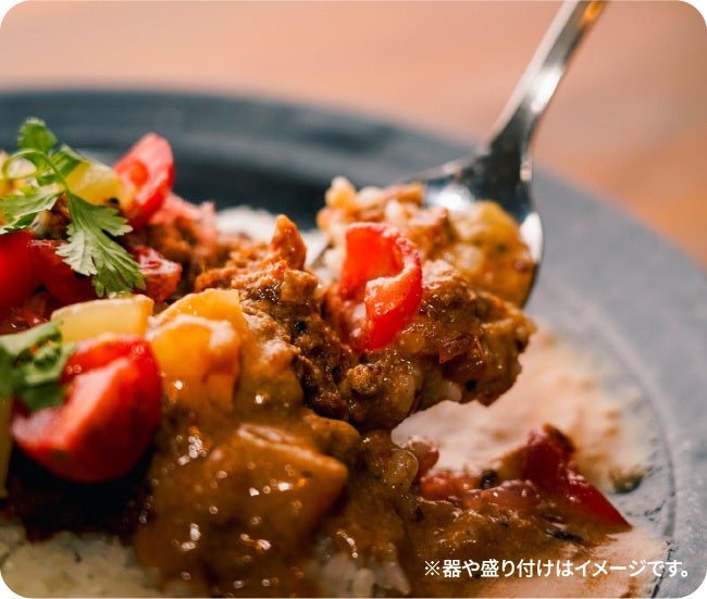有名グルメサイトでの名店選出や、カレーガイド誌で年間総合グランプリを受賞した、本格スパイシーカレー専門店から。オマール海老の旨みを凝縮し、素材由来の赤みを帯びたポタージュのような一品が登場。エビ本来の持つ甘み、キウイやミニトマトの爽やかな甘みと酸味、スパイスの効いたツナのカレーが織りなすハーモニーがたまらない一品です。