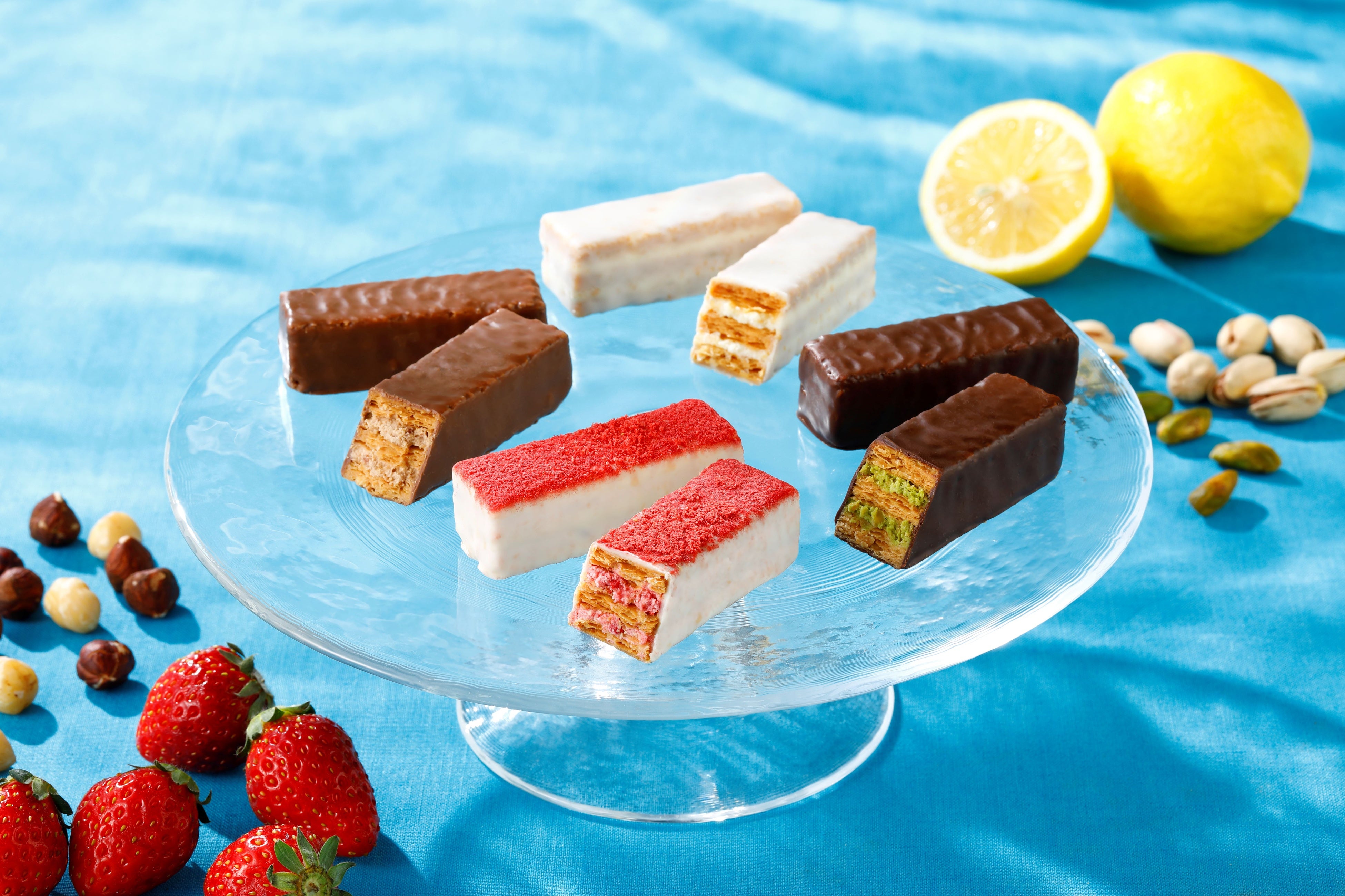 個性の異なる「いちご」「れもん」「ピスタチオ」「ジャンドゥーヤ」4つのミルフィユを