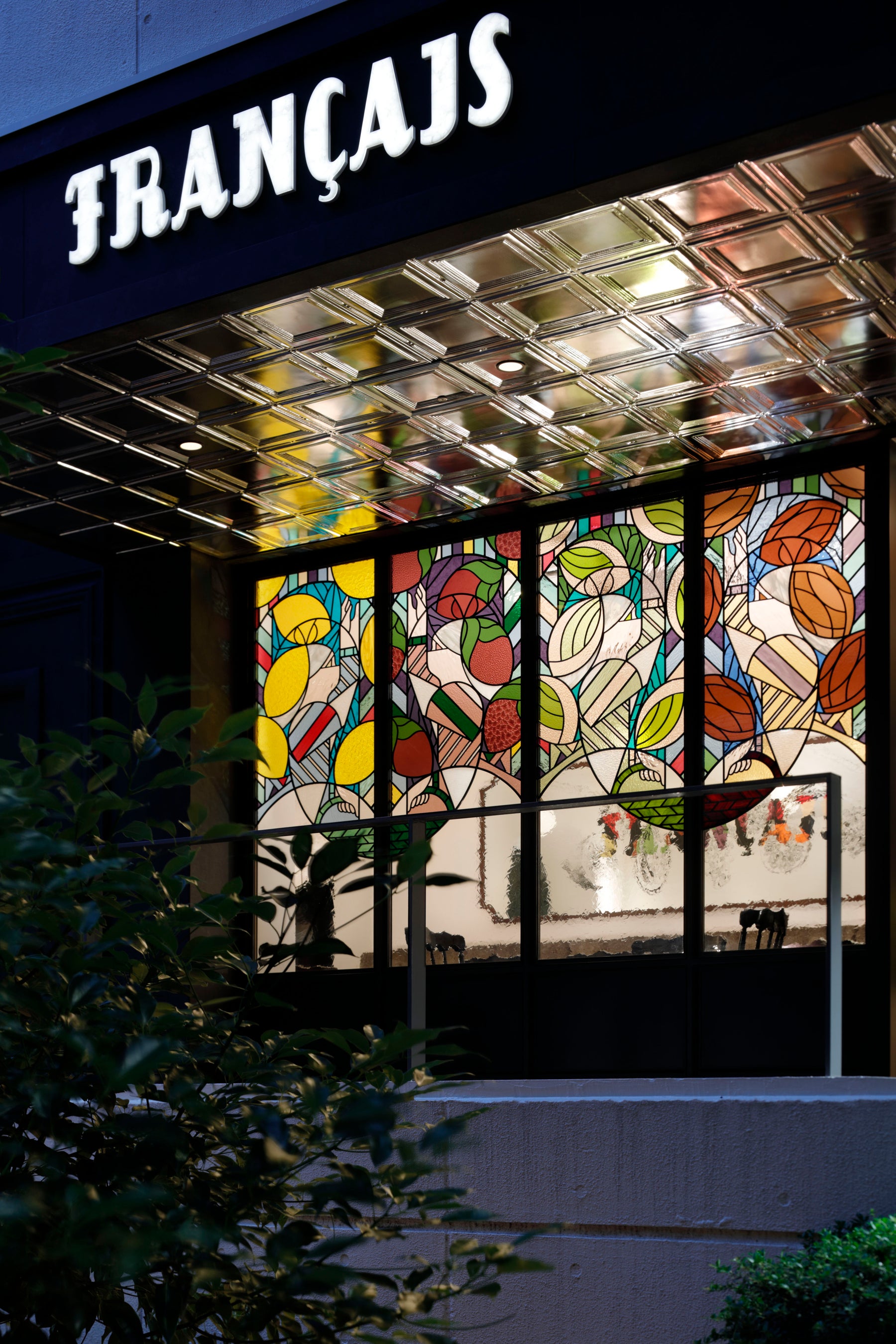 その木漏れ日は、職人によって一枚一枚つなぎ合わされたステンドグラスに彩られ、空間をあざやかに光で満たします。そして緩やかに回廊をめぐり、商品をやさしく包み込みます。”降りそそぐ光で果実が育つ”そんなうれしさであふれるお店です。