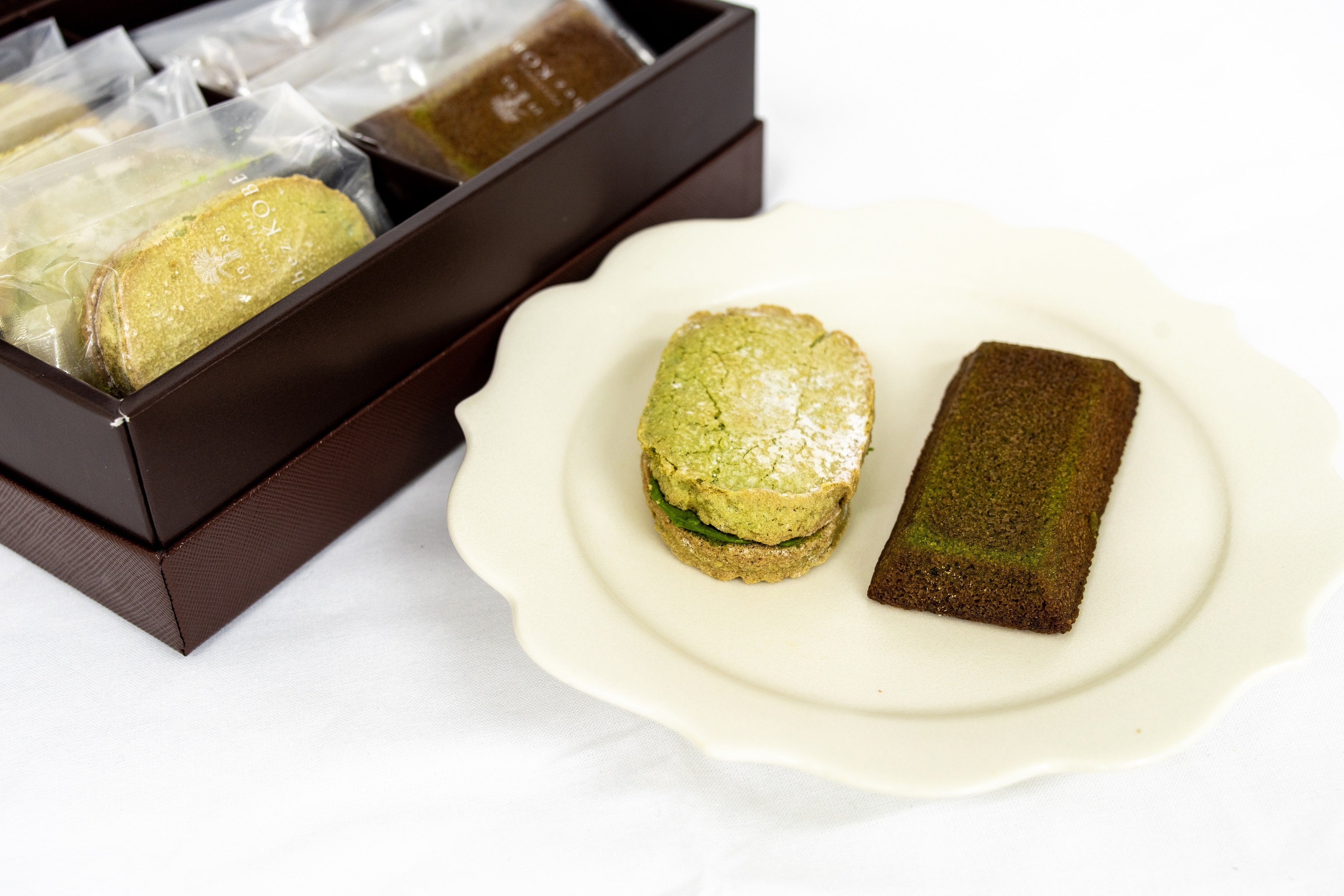 全国有数の抹茶生産地として有名な愛知県西尾市。その西尾抹茶が持つ奥深い香りと上品な味わいを引き出し、伝統的なフランス菓子と融合させました。最高の素材を選び抜いてパティシェが一つ一つ丁寧に焼き上げた、フィナンシェとダックワーズのアソートメントです。