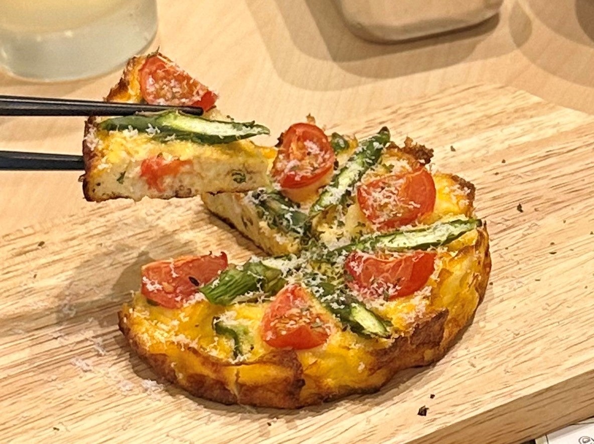 ミニトマトやアスパラなど野菜たっぷりのオリジナルオムレツです。