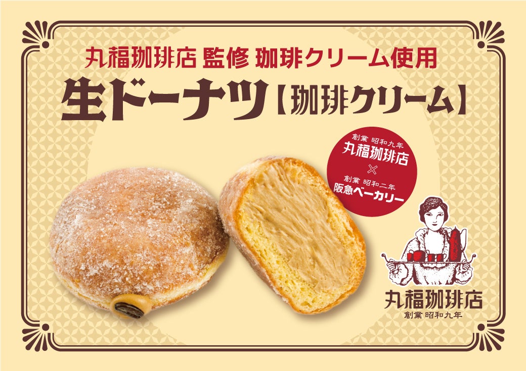 この度、人気喫茶店「丸福珈琲店」監修の珈琲クリームを使用した生ドーナツが新登場いたします。