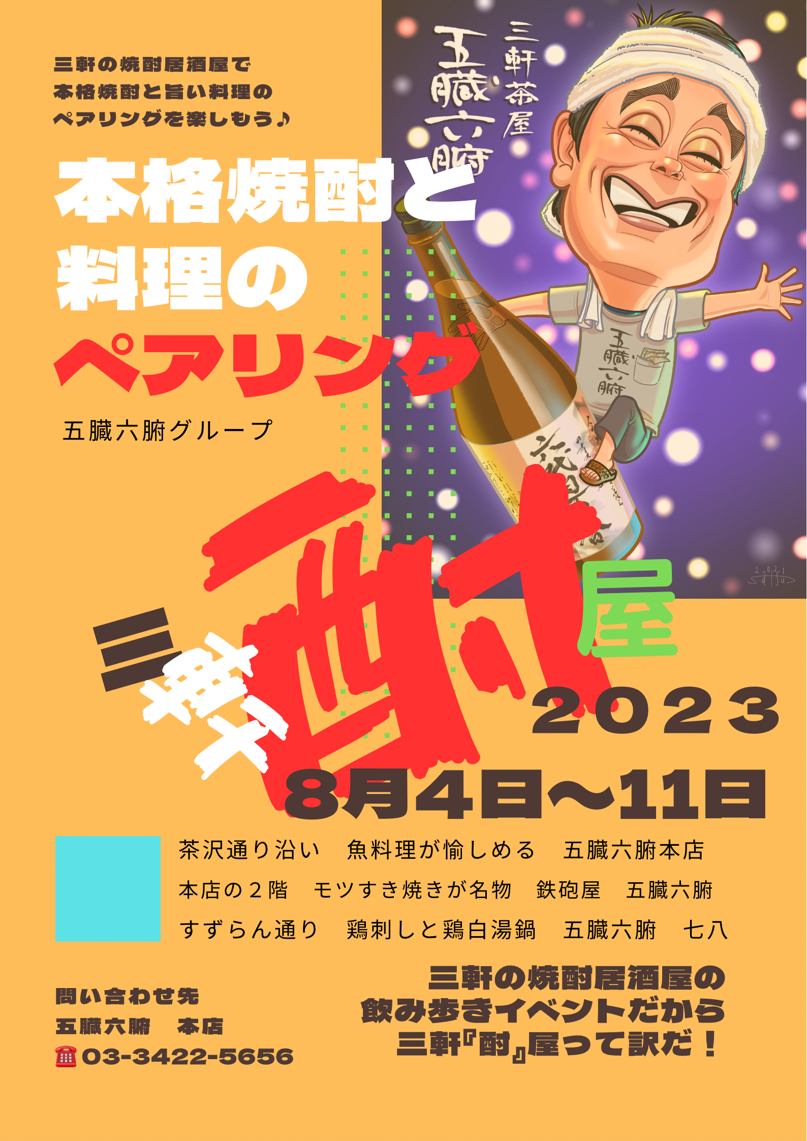 三軒茶屋で、本格焼酎と料理のペアリングイベント「三軒酎屋2023」が開催されます。