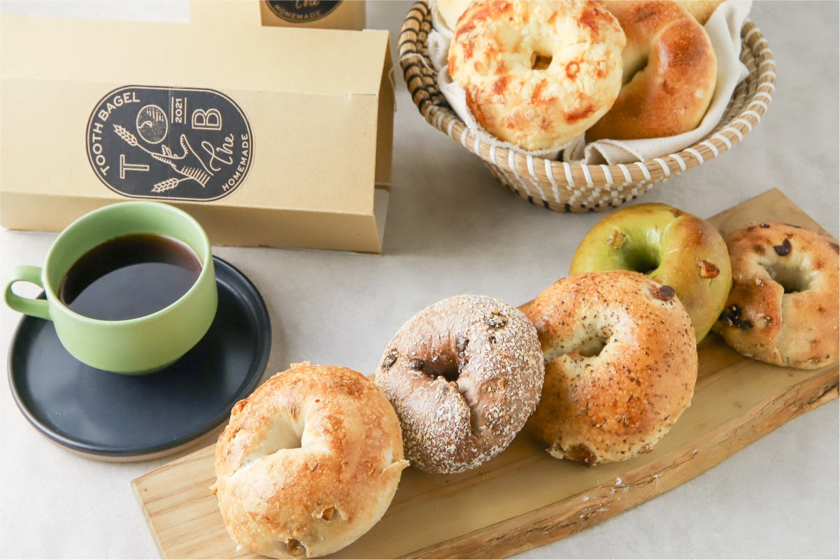 熱湯を入れて捏ねる湯種製法ならではのもちもち食感と、素材の味わいを同時に楽しんでいただける TOOTH TOOTHベーグル全種類の贅沢なラインナップ。