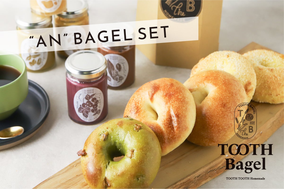 熱湯を入れて捏ねる湯種製法ならではのもちもち食感と、素材の風味とあんを同時に楽しんでいただけるTOOTH TOOTHのあんベーグル全5種のラインナップ。