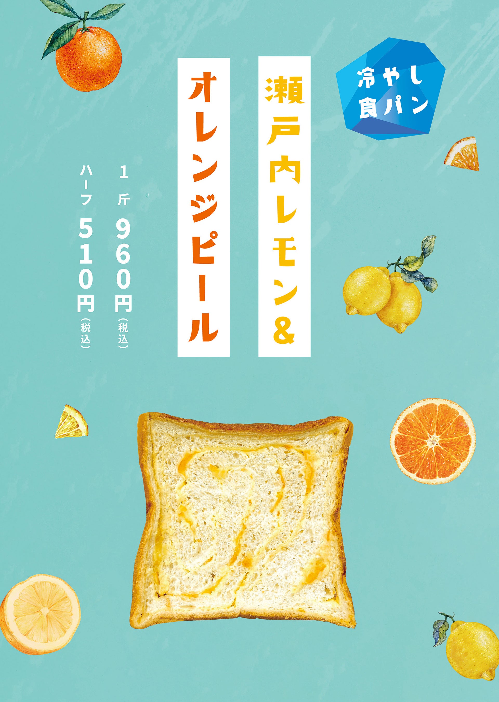 太陽の光をたっぷり浴びた瀬戸内レモンの優しい酸味のレアチーズクリームに、果肉感と香り豊かなオレンジピールがたっぷり入った、柑橘の爽やかな風味の中にほろ苦さを感じる上品な味わいの“冷やし食パン”です。