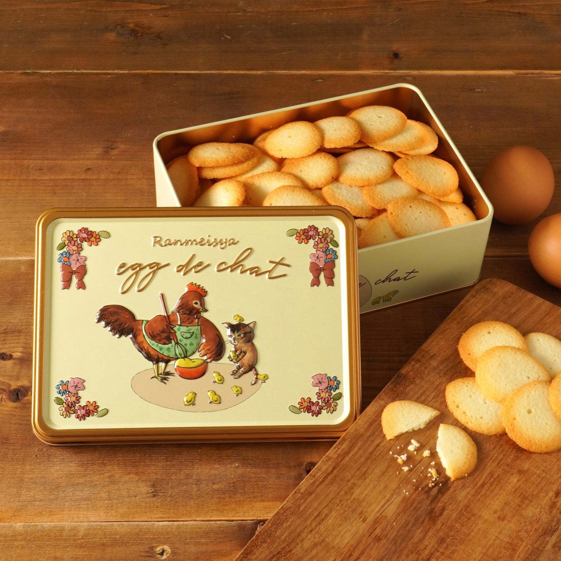 エッグドシャとは可愛いイラストが描かれたオリジナルのクッキー缶ギフト。おなかを空かせた迷子の子猫。めんどりのお母さんに「まほうのたまご」でお菓子を焼いてもらいました。やさしくて、おいしくて。心がふんやり幸せになりました。そんな物語に思いを馳せてエッグドシャは誕生しました。自社ブランド卵「磨宝卵GOLD」を使用した、薄焼きの軽いサクサク感と、豊かな風味のコラボレーション。贅沢な味わいとやさしい時間をお楽しみ下さい。楽天市場にてクッキー部門、ラングドシャ部門で1位を獲得。婦人画報にも掲載され「婦人画報のお取り寄せアワード2023」にて大賞を受賞しました。