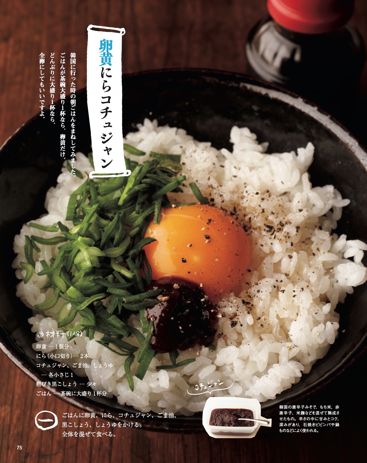 ・韓国の朝ごはんをまねた「卵黄にらコチュジャン丼」
