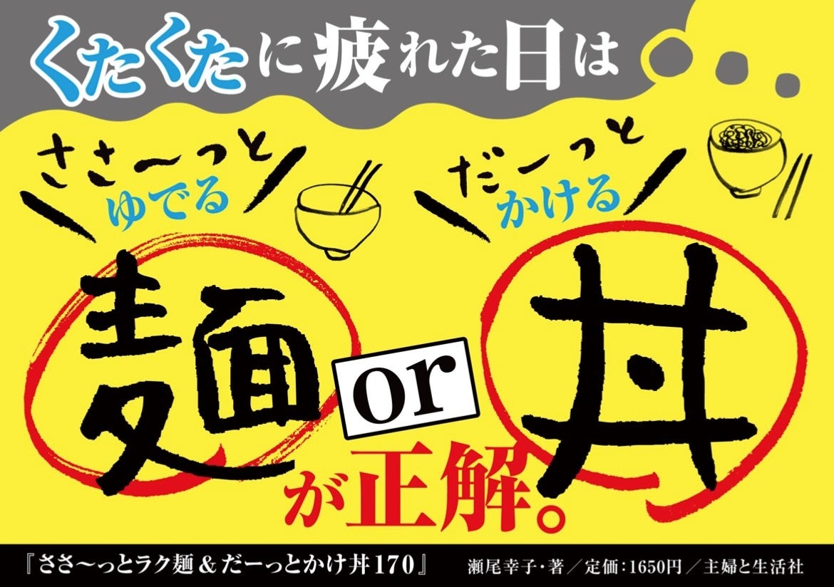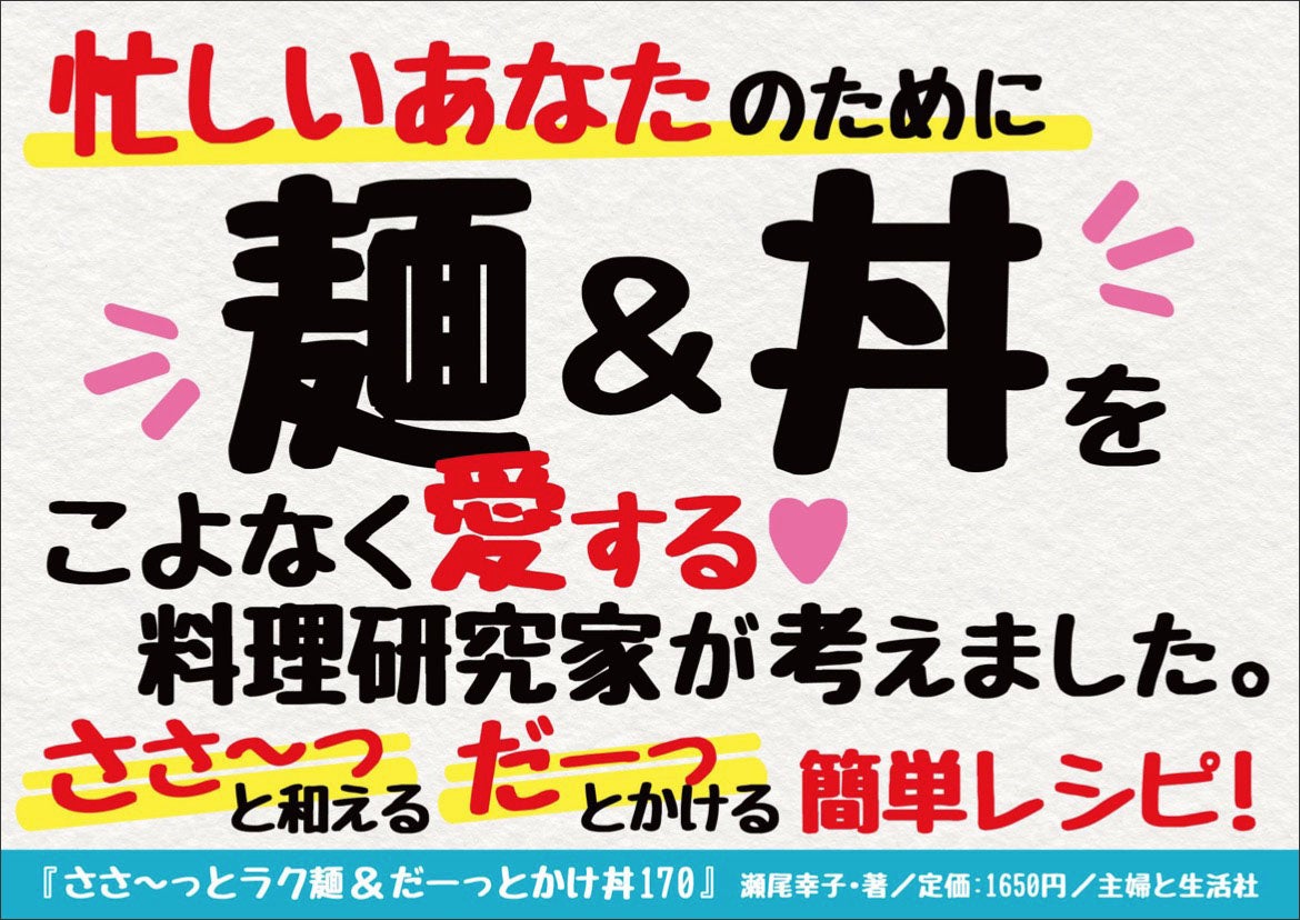 麺と丼をこよなく愛する料理研究家・瀬尾幸子さんが忙しいあなたのために考えた「おいしい!」かつ「手間なし時短!」のとっておきメニューばかり。何もしたくない日でも無性に食べたくなる、元気が出る麺&丼をぜひお試しください!