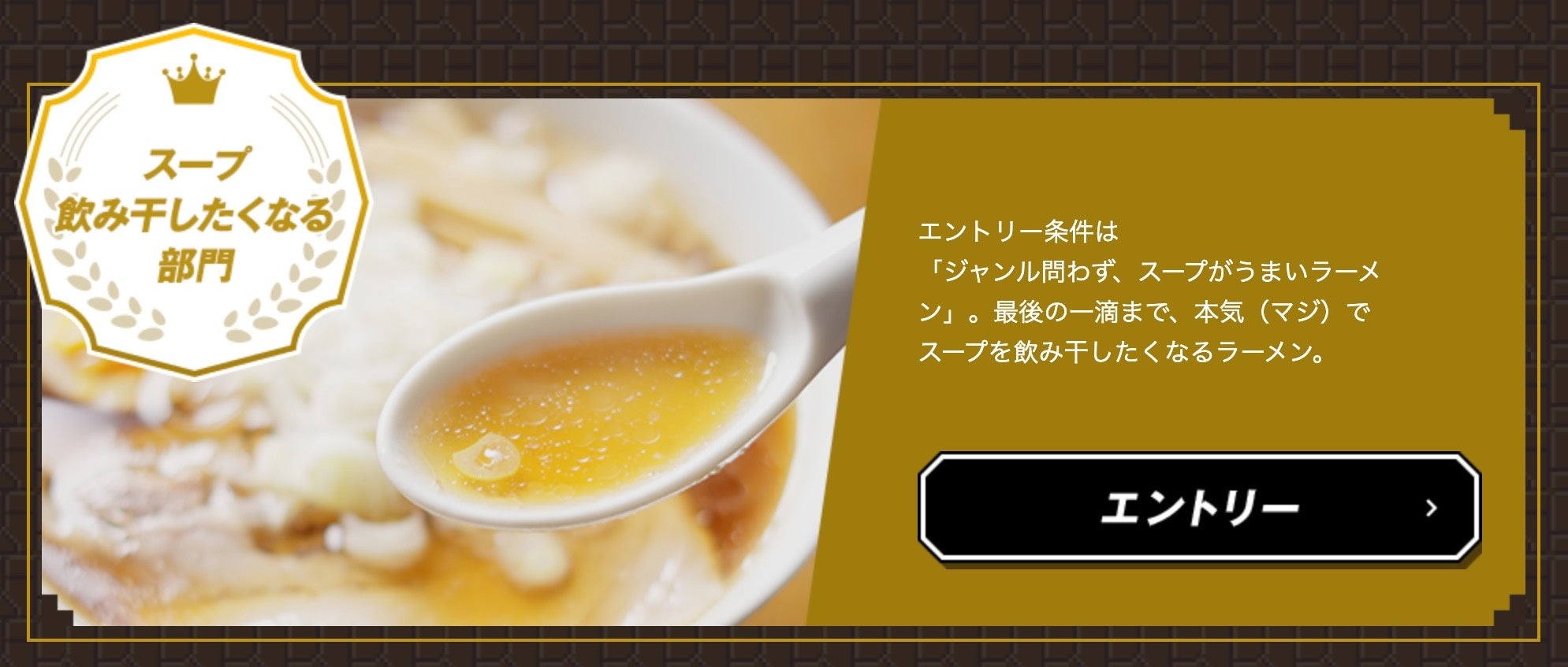 ※エントリー条件は「ジャンル問わず、スープがうまいラーメン」。