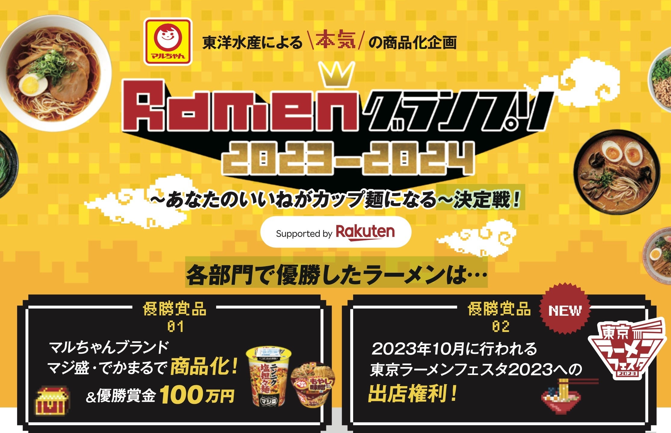 ※各部門とも優勝者に「賞金100万円+カップ麺商品化+東京ラーメンフェスタ2023出店権利」を授与します。