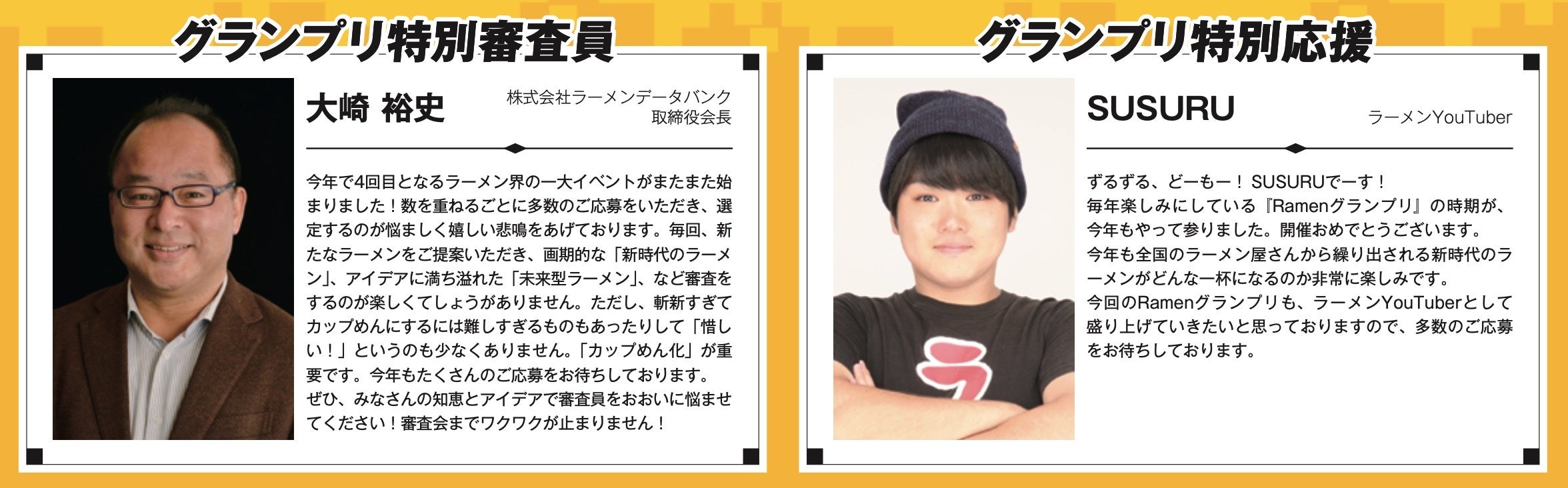 ★ラーメン界を代表とする審査員・特別応援のお二方がグランプリに参加!!