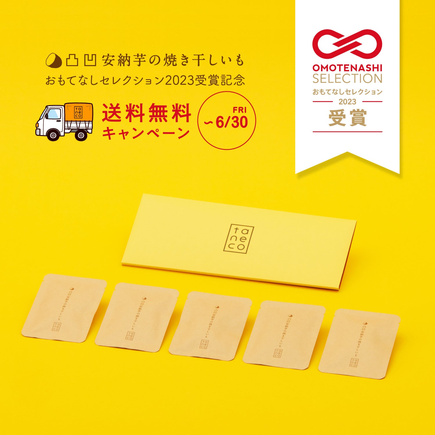 『taneco 凸凹安納芋の焼き干しいも』のOMOTENASHI Selection 2023受賞を記念して、期間限定送料無料キャンペーンを開催いたします。
