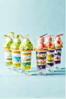 今夏のパフェはアデリアレトロとコラボレーション!キュートでカラフルなグラス6種にフレーバーティーがエレガントに香る、2種のサマーフルーツパフェをご用意しました。