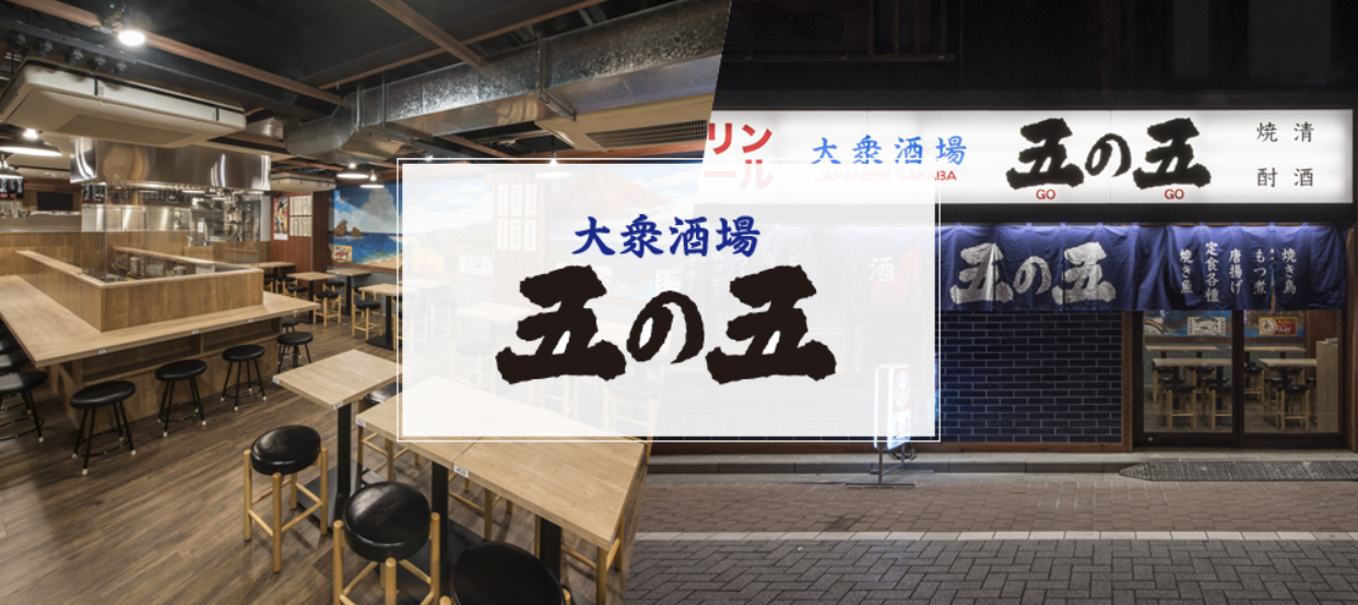 毎日立ち寄りたくなる【大衆酒場】四の五の言わずに 『五の五』 で決まり!毎日立ち寄りたくなる、皆さまに明日の活力をお届けする大衆酒場。明るく気軽な雰囲気の店づくりで、ひと手間かけた定番メニューの数々をお楽しみいただけます。