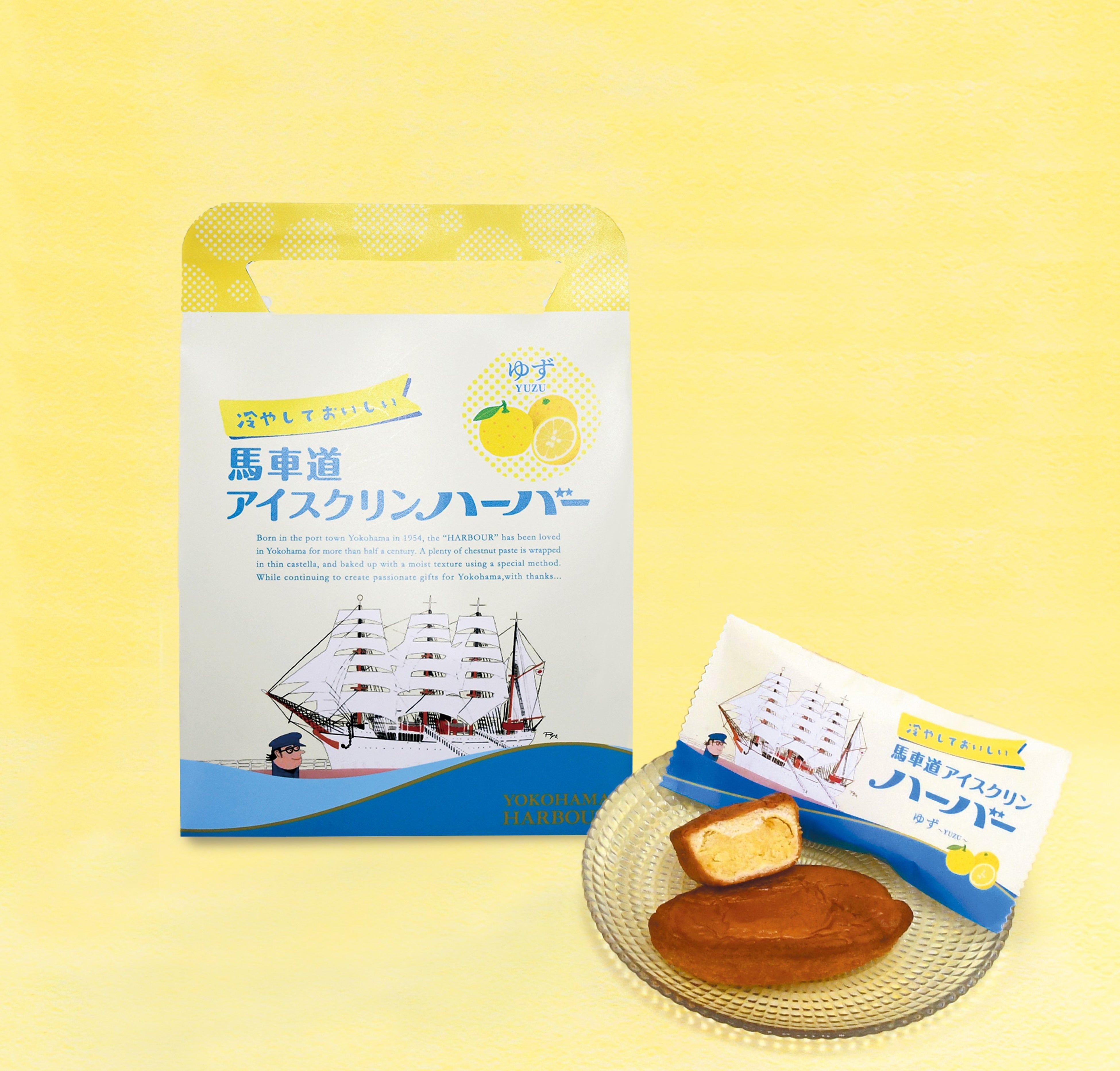 夏限定「馬車道アイスクリンハーバー ゆず」新登場!今年は特製アイスクリン餡にゆずを組み合わせ、より夏にぴったりな爽やかな味わい『特製アイスクリンゆず餡』が完成、2023年6 月1日に期間限定にて発売を開始しました。横浜馬車道発祥のアイスクリームをイメージした優しい味わいの餡にゆずピールをバランス良く合わせた自家製餡を、カステラ生地で包み伝統の製法で焼き上げました。冷やしても凍らせてもおいしい夏限定のハーバーの味わいをぜひお楽しみください。