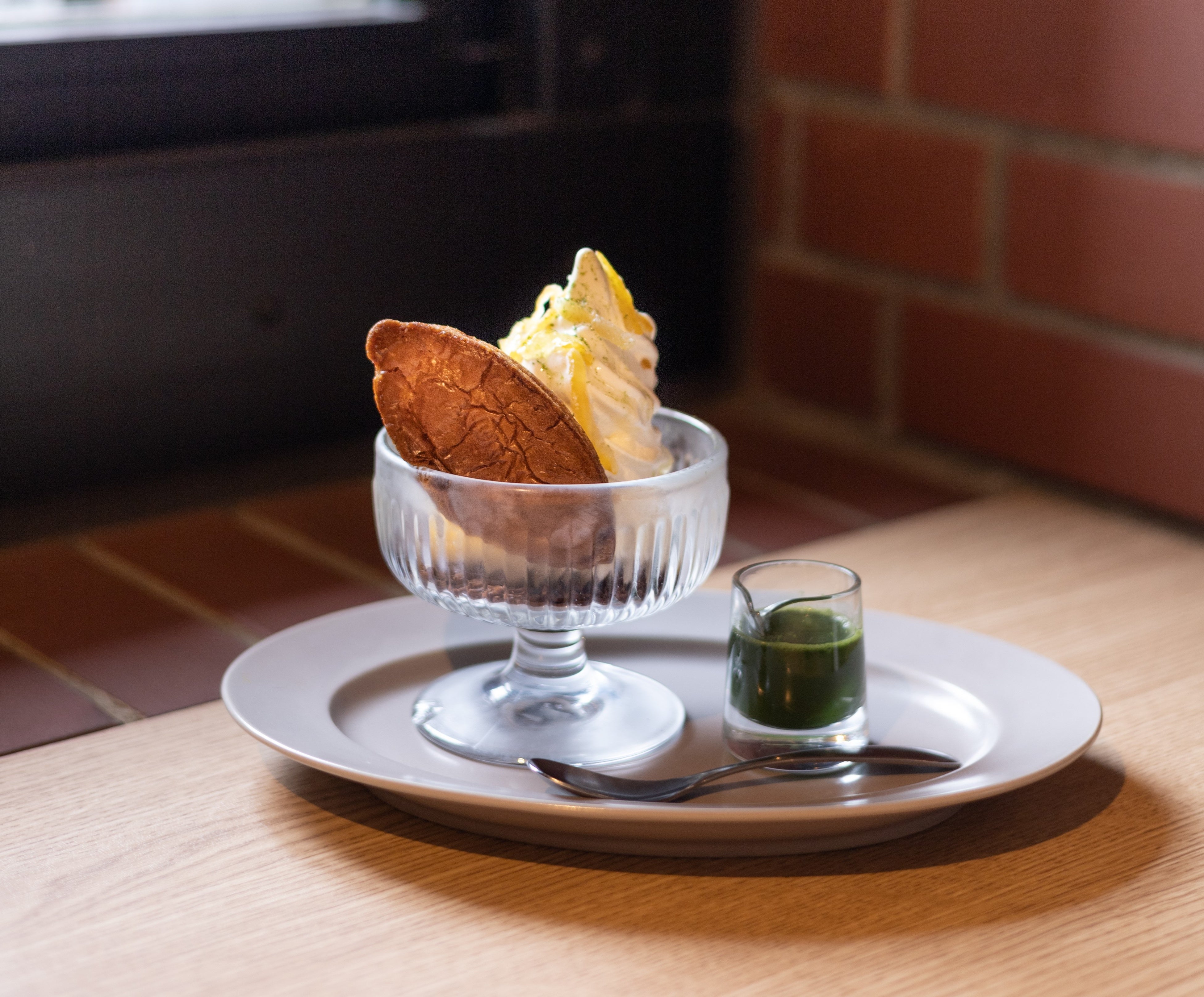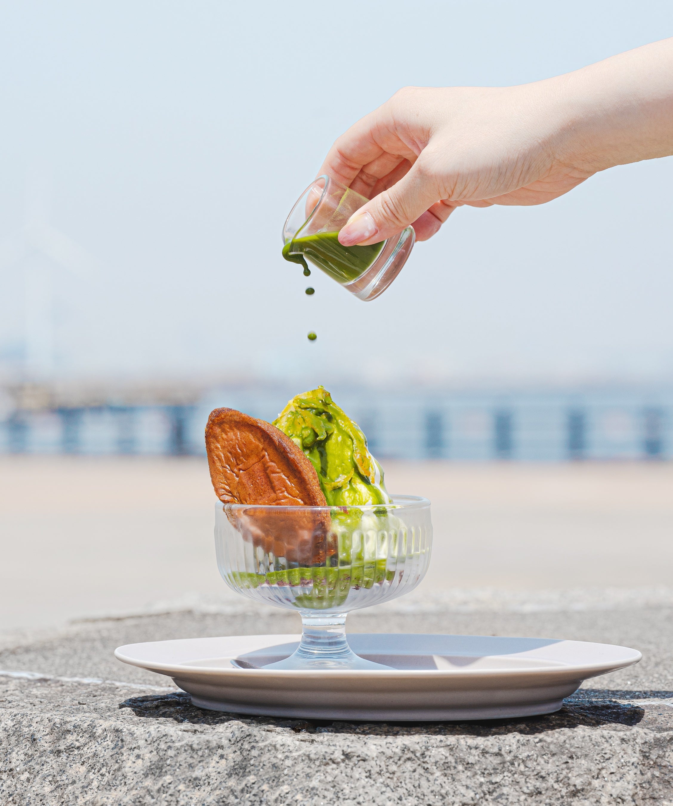■特徴:UNI COFFEE ROASTERY特製のバニラアイスクリームに、はちみつ漬けしたゆずのピールを贅沢にトッピングし、素焼きした「馬車道アイスクリンハーバー ゆず」を添えてご提供。砕いたカカオビスケットとバニラの上には抹茶のパウダーをトッピングし、さらに別添えの抹茶エスプレッソをかけてお召し上がりいただけます。夏にぴったりの爽やかな一品を、ぜひお楽しみください。