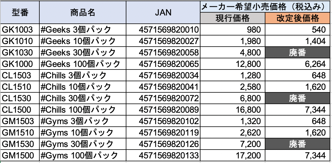 2.価格改定内容 約50%ダウン(希望小売価格より)