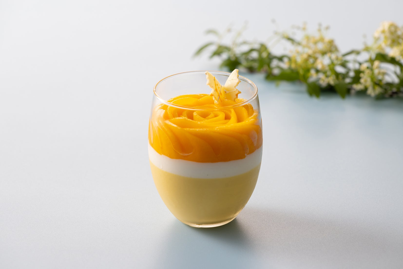 夏の代表的なトロピカルフルーツのマンゴーでつくる、鮮やかな色 合いが目を引く一品です。程よく優しい甘さのクリームに、完熟マンゴーの濃厚な味わいと甘さが合わさり、口の中いっぱいに広がります。