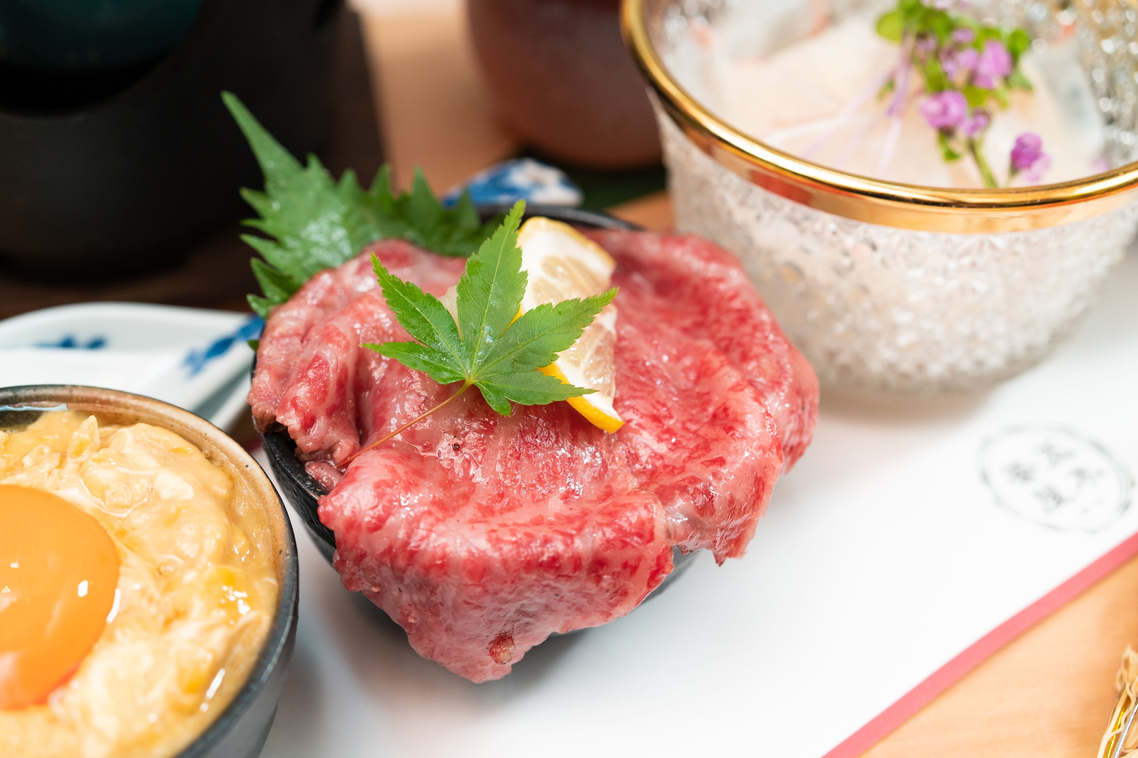 「大人気の京丼五種食べ比べ膳から、ついに夏限定メニューの登場です。今回のテーマは、”夏旅の栞”。京都らしさ、夏らしさを目でも舌でも味わえるよう、こだわりを詰め込みました。例えば、『鱧と京野菜のしゃぶしゃぶ丼』は、京都の夏の風物詩である新鮮な鱧を用い、盛り付けは酢橘や菊の花を浮かべることで『涼しさ』を表現。