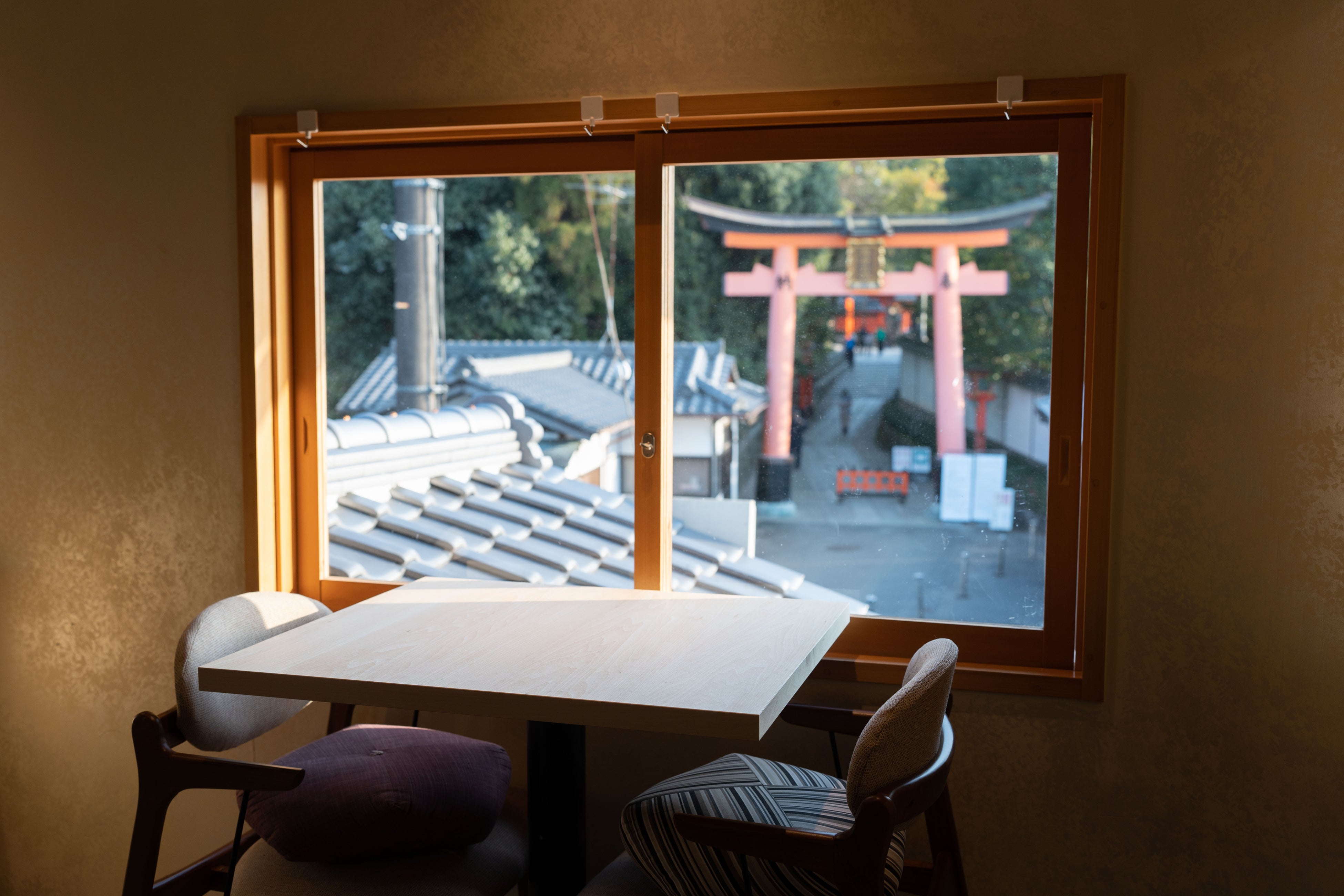 2階席には4つの窓があり、全ての窓で見える景色が違います。各方角には伏見稲荷の神様が祀られており、方角と干支にならって2023年の運気上昇を祈願していただけます。