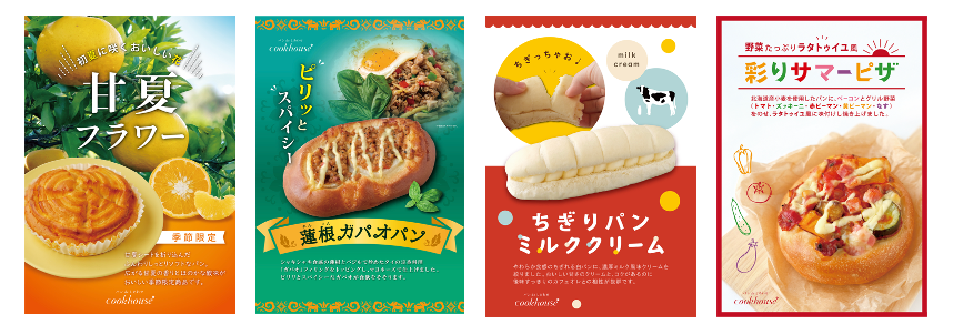 6月の商品は、ジメジメと暑い梅雨時期に、少しでもさっぱりしてほしいと、ほのかな酸味が特徴の「甘夏フラワー」や、ピリッとスパイシーな「蓮根ガパオパン」など8種類を6月1日(木)から、大阪府内・奈良県内24店舗のクックハウスで販売を開始します。