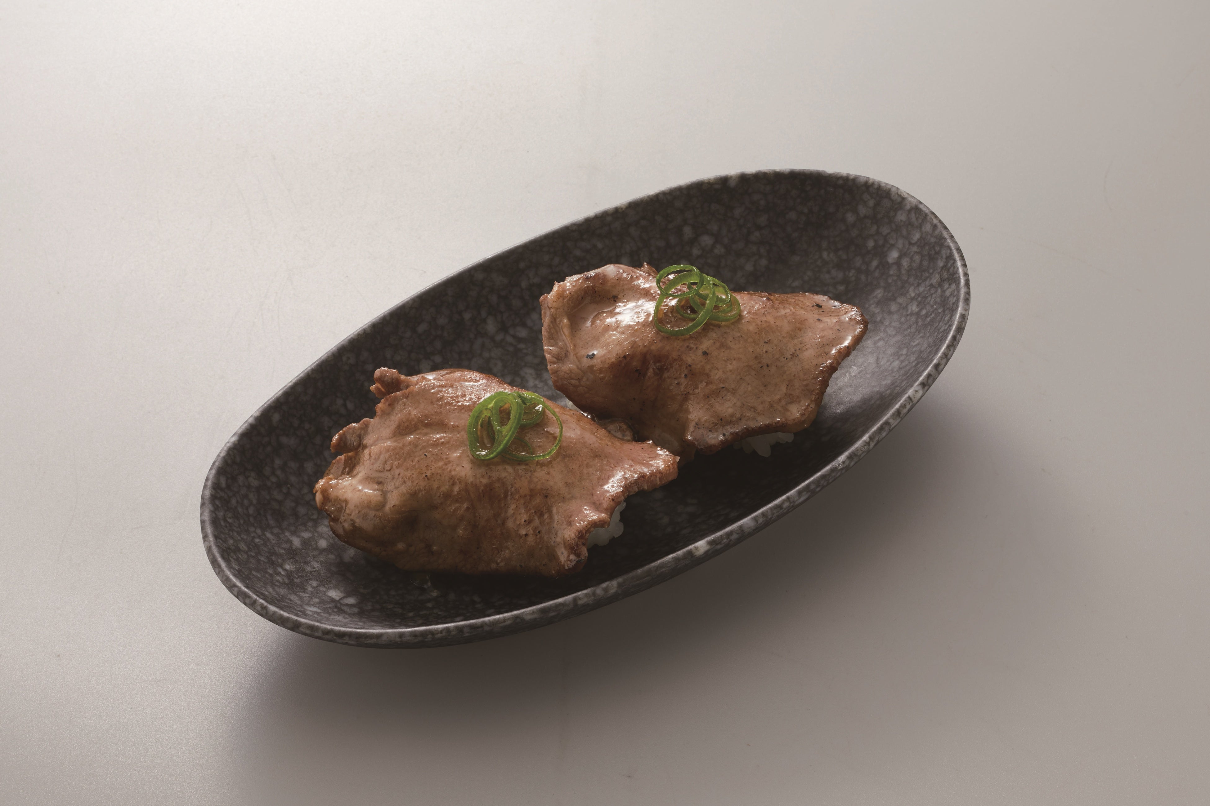 今回の牛タン食べ放題コースでは、牛タンならではの程よい弾力が楽しめる「牛タンスライス」が食べ放題のほか、香ばしく焼き上げた牛タンをお寿司で食べる「牛タンにぎり」、そして、厚切りの牛タンに相性抜群のとろろをのせて丼ぶりに仕立てた「ミニ牛タンとろろ丼」が食べ放題です。