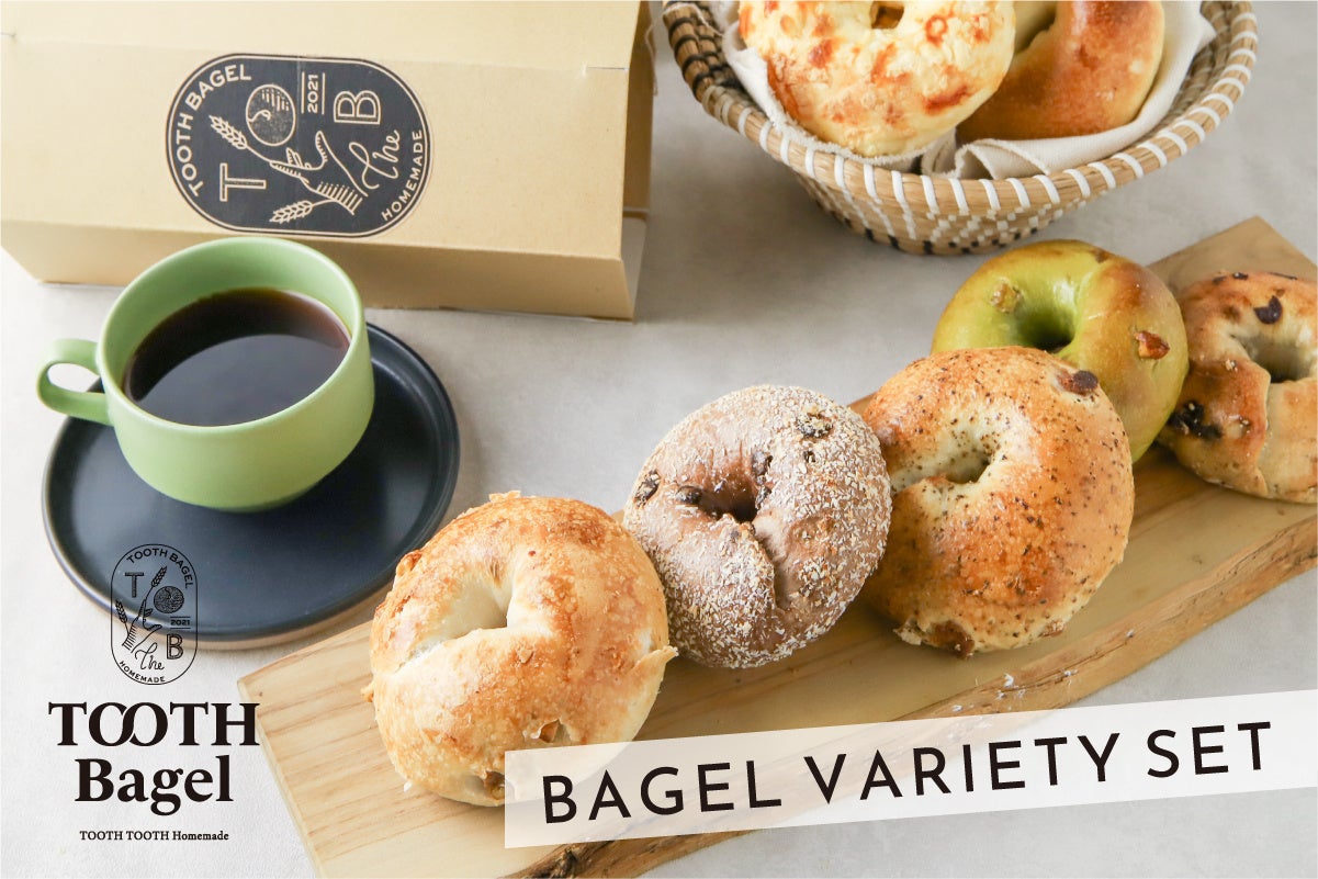 熱湯を入れて捏ねる湯種製法ならではのもちもち食感と、素材の味わいを同時に楽しんでいただける TOOTH TOOTHベーグル全種類の贅沢なラインナップ。
