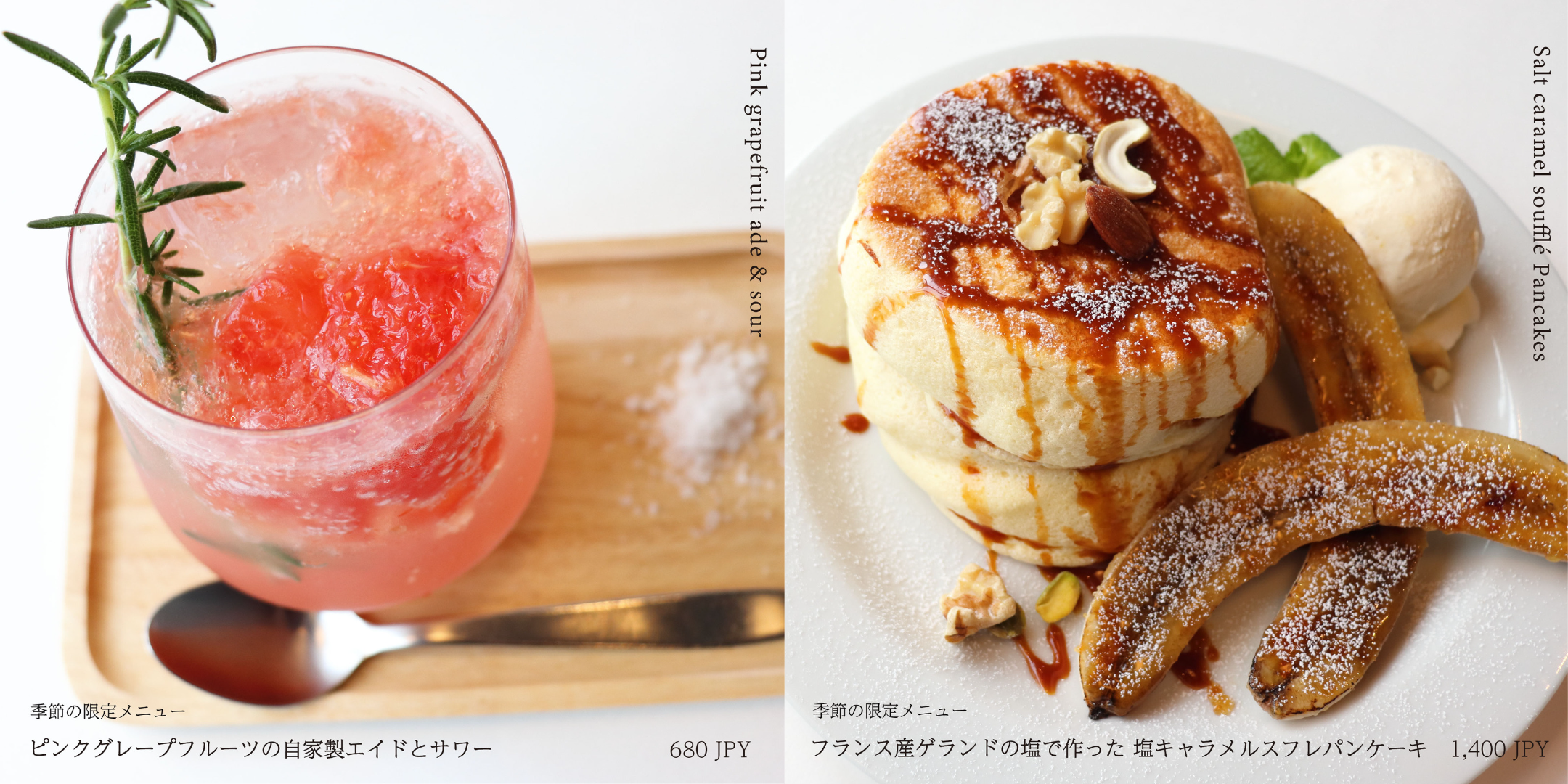 毎シーズン大人気のinZONE TABLEオリジナルパンケーキフレーバーと限定ドリンク。この夏のテーマは”塩”。甘味×塩味のコントラストをお楽しみください。