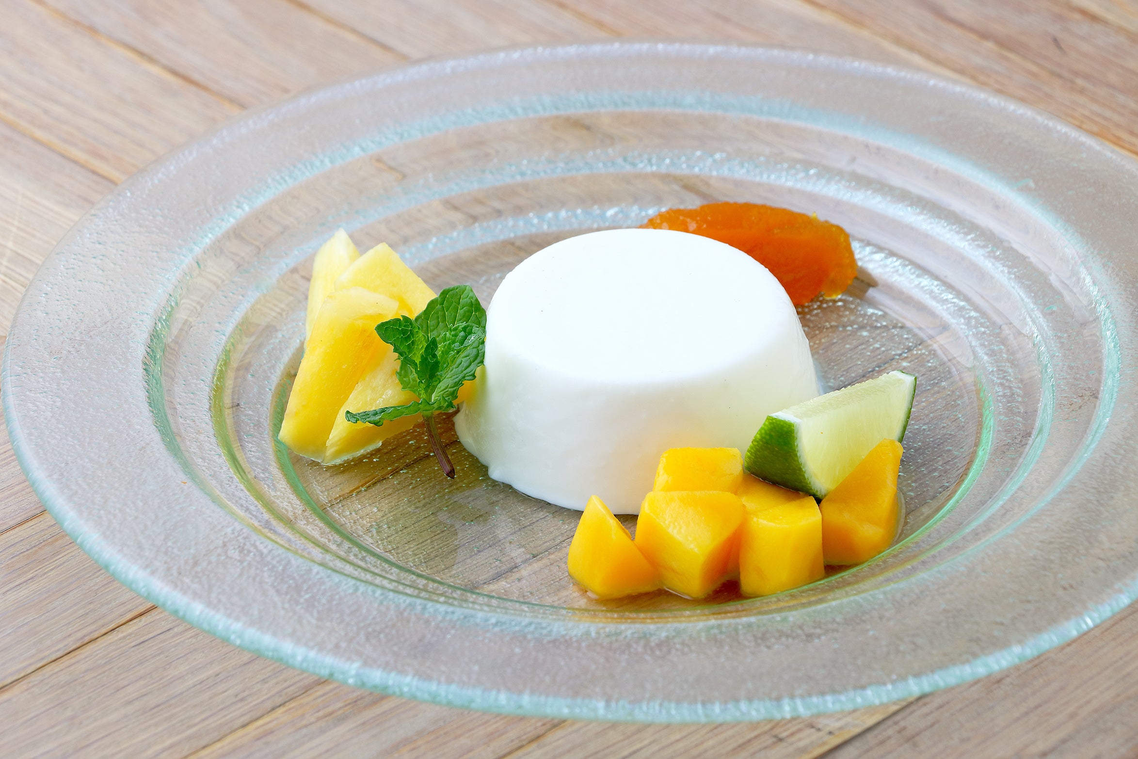 ■ココナッツブランマンジェ マンゴーピューレと季節フルーツ