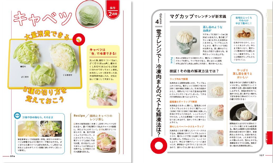 左:キャベツの冷凍保存 / 右:冷凍肉まんのベストな解凍方法