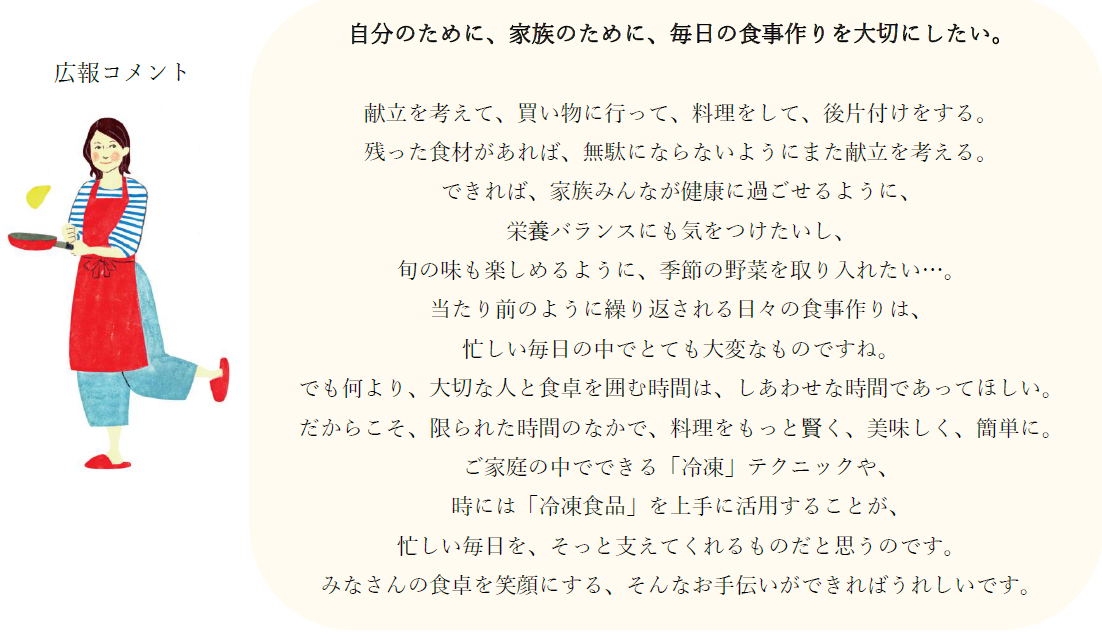 『“冷凍”を賢く使って豊かな食卓に。』をテーマに、生活者の役に立ち楽しめる情報を発信している。