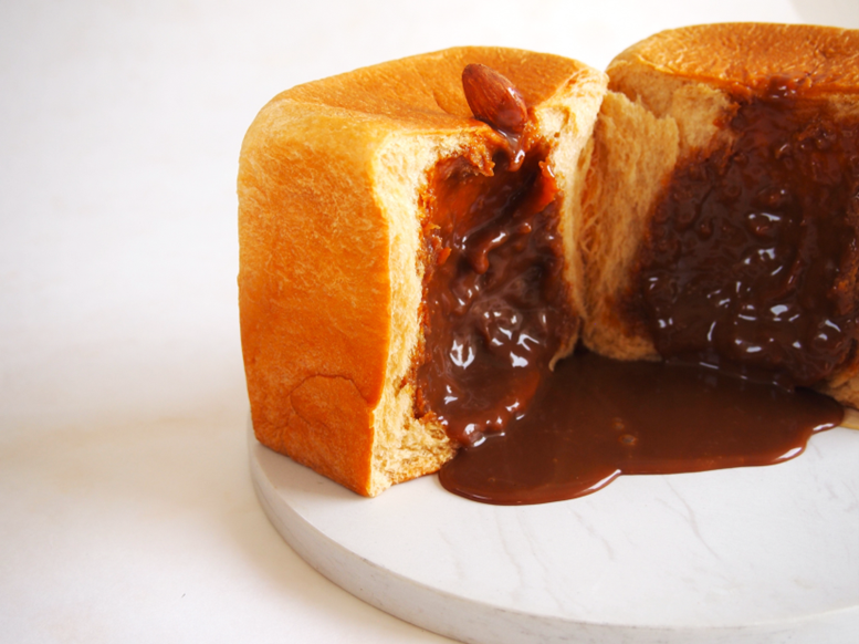 森永製菓の超ロングセラー商品「ミルクキャラメル」。長年愛され続ける伝統の味を保ちつつも、食パンと相性の良いフィリングとしてオリジナルのミルクキャラメルソースを開発。よりキャラメル感を楽しんでいただくよう、70gのミルクキャラメルソースを入れ込んでいます。しっとりもっちりとしたSTEAM BREADのパン生地と良く合う、大人の甘さとコクを全面に感じられる贅沢な仕様にしました。