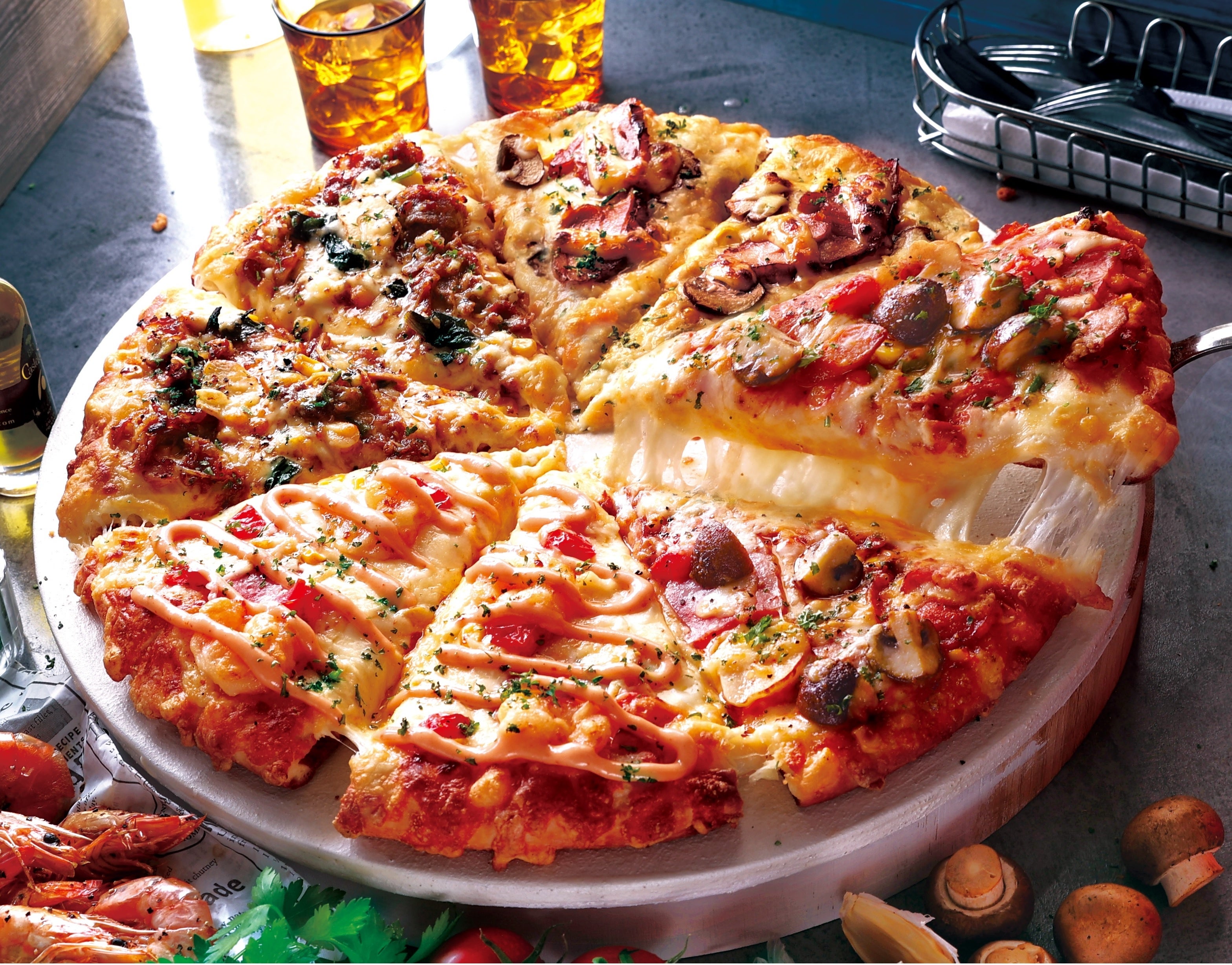 ガーリックの効いたトマトソースに、サラミやベーコンなど11種類のトッピングで仕上げた食べ応え抜群のガーリック系ピザ「ゲッツ」と、エビフリッターに絡まるマヨネーズとオーロラソースの相性が抜群!ピザーラ夏の人気ピザ「エビマヨ」、さらに定番商品として大人気の「テリヤキチキン」や「ピザーラプルコギ」が一枚で楽しめる、オールスター級の逸品が夏限定メニューとして発売開始!