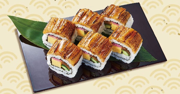 たっぷりの鰻と牛肉を香ばしい「たれ舎利」で巻きました。スタミナたっぷり!!大満足の巻き寿司です。