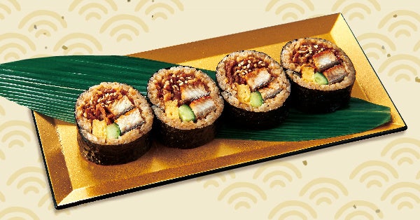 たっぷりの鰻と牛肉を香ばしい「たれ舎利」で巻きました。スタミナたっぷり!!大満足の巻き寿司です。