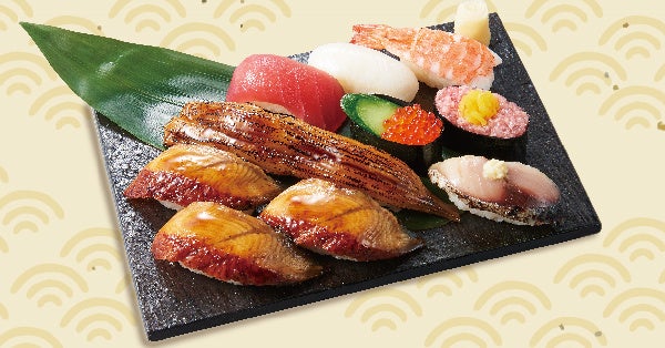 ジューシーな鰻と炙った1本穴子をメインに、厳選した人気ネタを盛り合わせました。フェアのおすすめ商品です♪