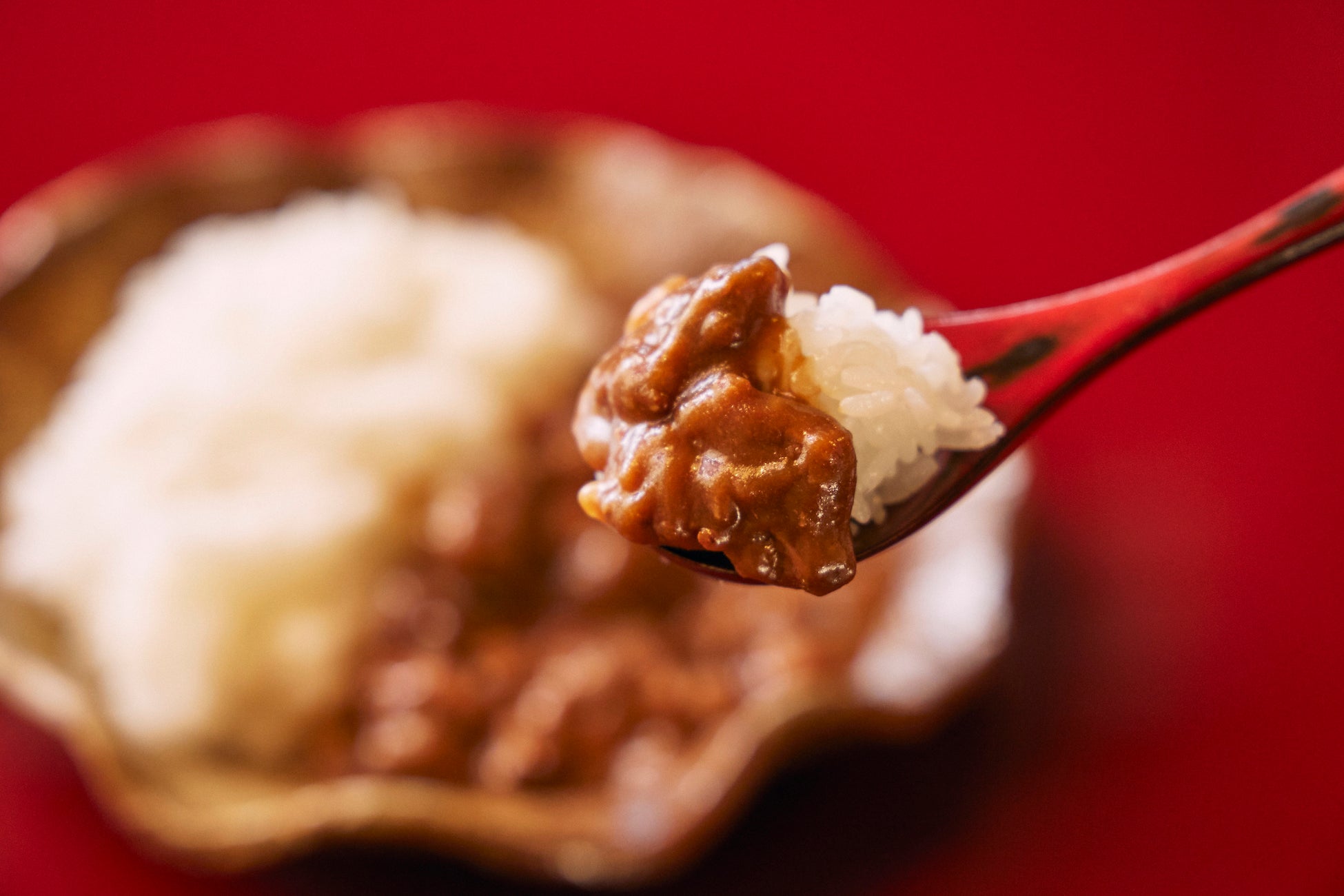老舗精肉店「日山」(東京都中央区)とコラボレーションし、「日山」が厳選した黒毛和牛の肩肉を使用しています。食感を残しているので、食べごたえのあるハヤシライスに仕上がりました。